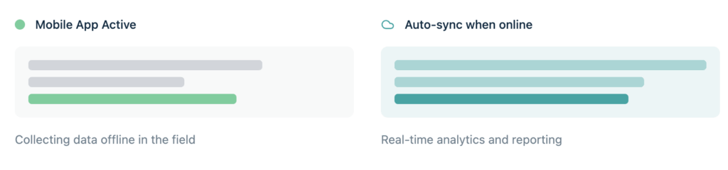 Field teams use mobile apps to collect data anywhere, even without internet connection. All data is stored locally.